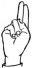 На ћирилици написано ПРЕДРАГ ЧЕКЛАНОВИЋ састоји се из 17 слова [?]. Исписано ћириличном једноручном азбуком за глувонеме: